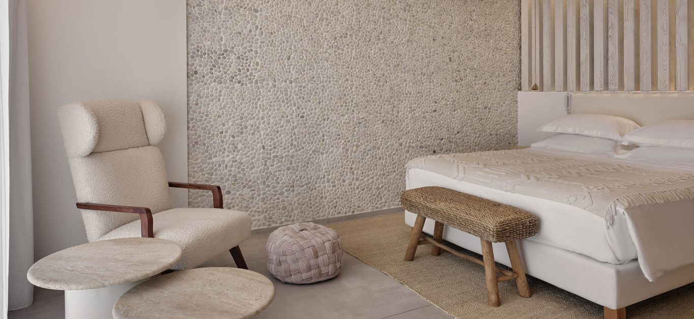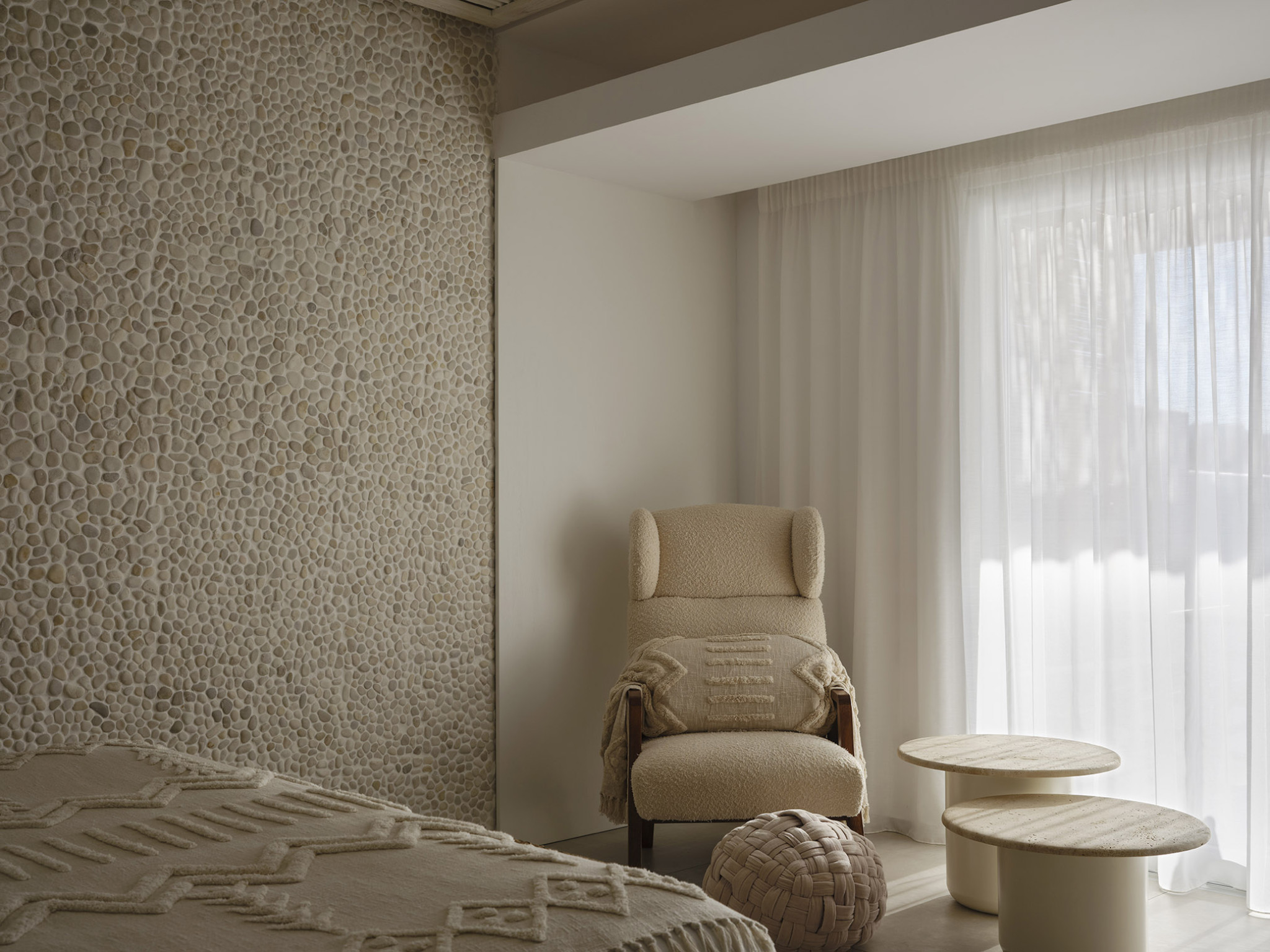 The Design Sea View Suites embody modern elegance through their thoughtful blend of clean architectural lines, organic textures and a calming neutral palette. From the moment you step inside, you're embraced by an atmosphere of understated luxury, where simplicity meets sophistication in every detail.