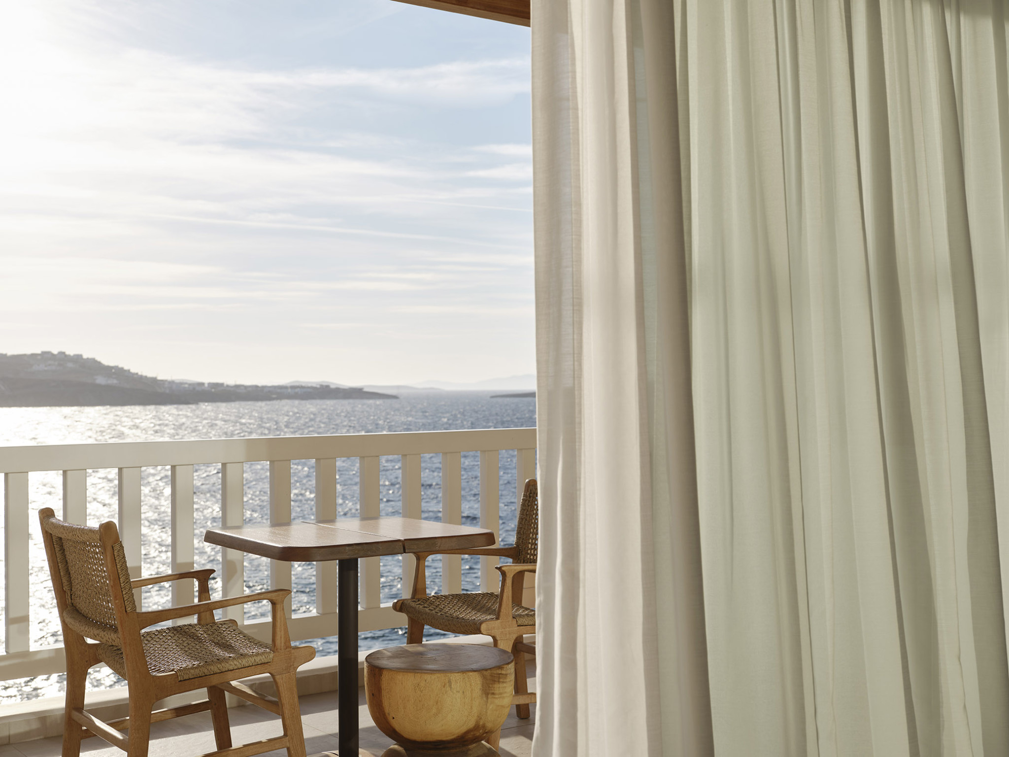 Step out onto your private balcony and take in the sweeping sea views — the ever-changing light across the Aegean becomes a living backdrop to your stay. Whether you're starting your morning with a quiet coffee or winding down as the sky turns gold at sunset, the outdoor space becomes an extension of the suite’s tranquility.