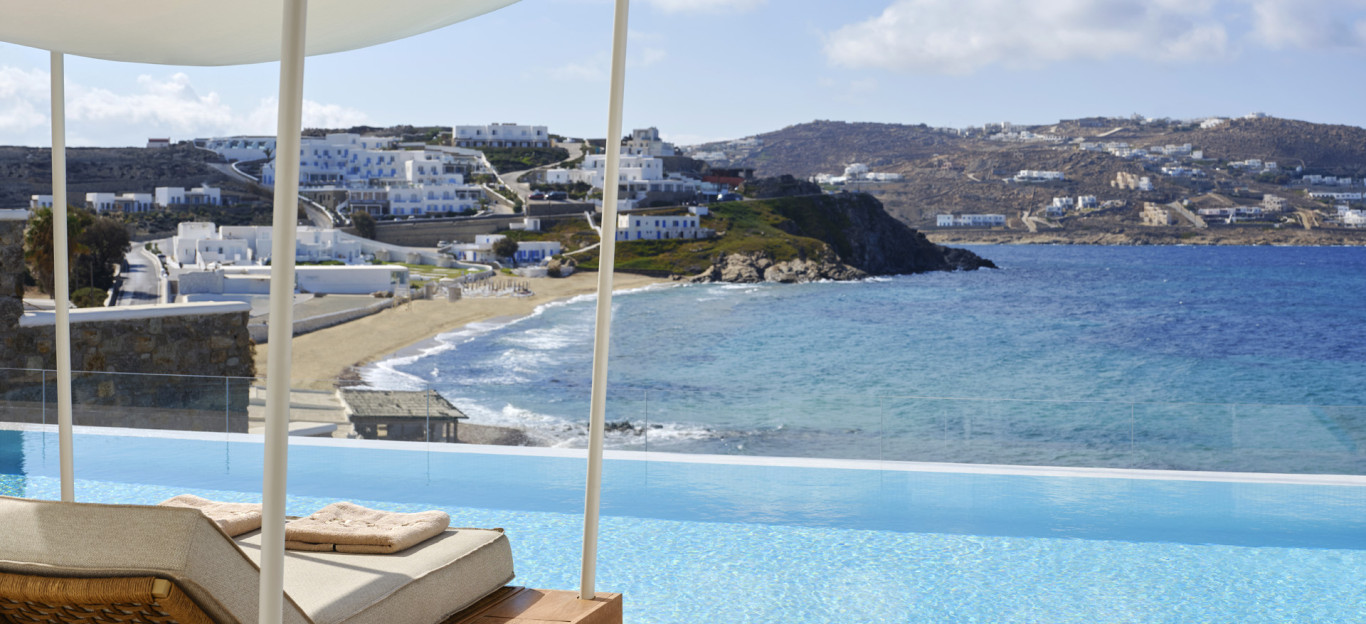 The island’s other celebrated beaches — from the chic Psarou to the vibrant Paradise and the secluded Agios Sostis — are all within a short drive, offering a variety of atmospheres and experiences.